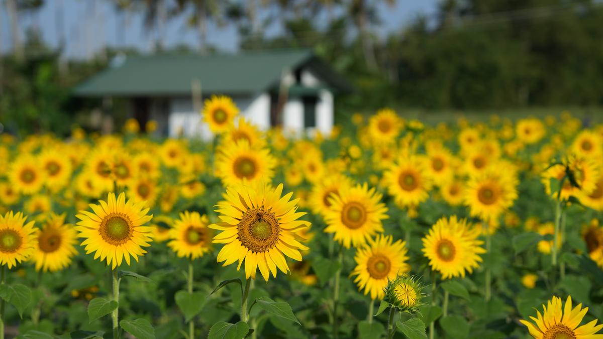 ​Sunflowers are in full bloom on six acres inside St Xavier’s College, Thumba, at the farm run by agripreneur SV Sujith