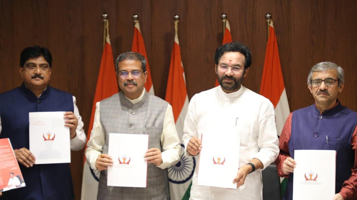 Education Minister Dharmendra Pradhan unveils logo of Sammakka Sarakka central tribal university