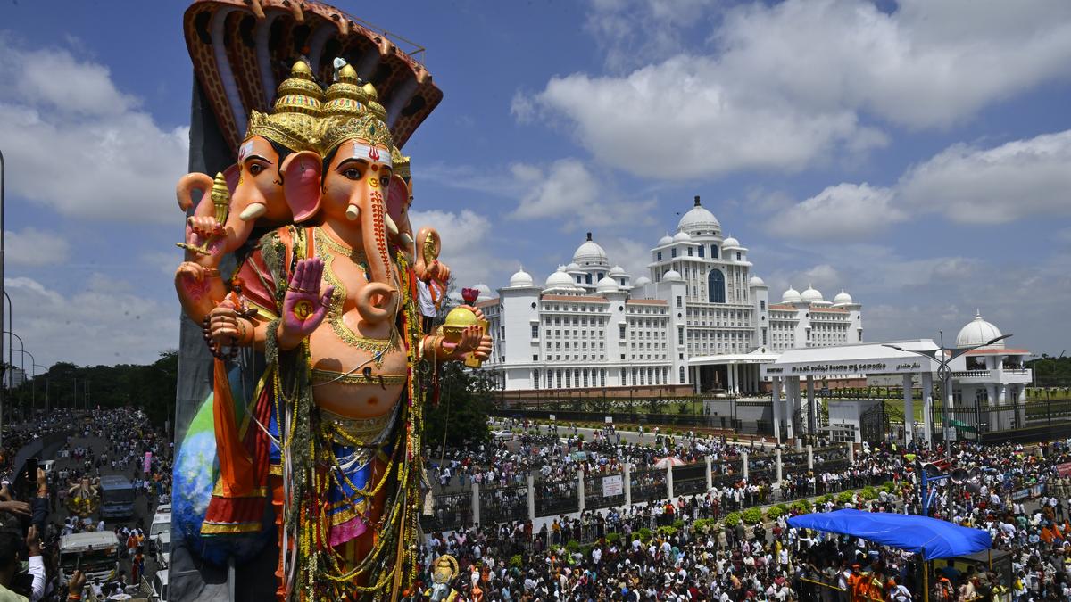 ​The Khairtabad Ganesh idol is 69-ft tall. To put the size of the idol in perspective, the granite Buddha statue in the middle of the Hussainsagar lake is 58-ft tall.