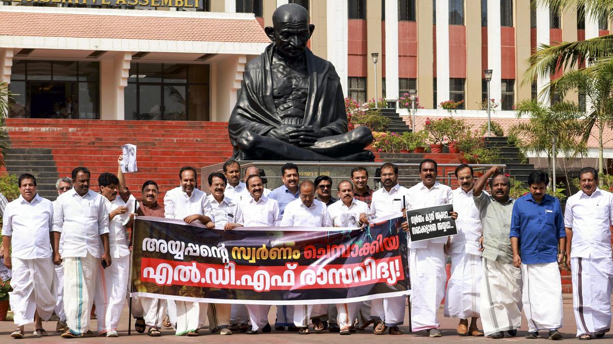 UDF members walk out during Question Hour, protesting against remarks of Chief Minister Pinarayi Vijayan. Opposition Leader accuses LDF government of ‘denigrating’ Sonia Gandhi and Priyanka Gandhi in the House to ‘appease’ BJP government at Centre