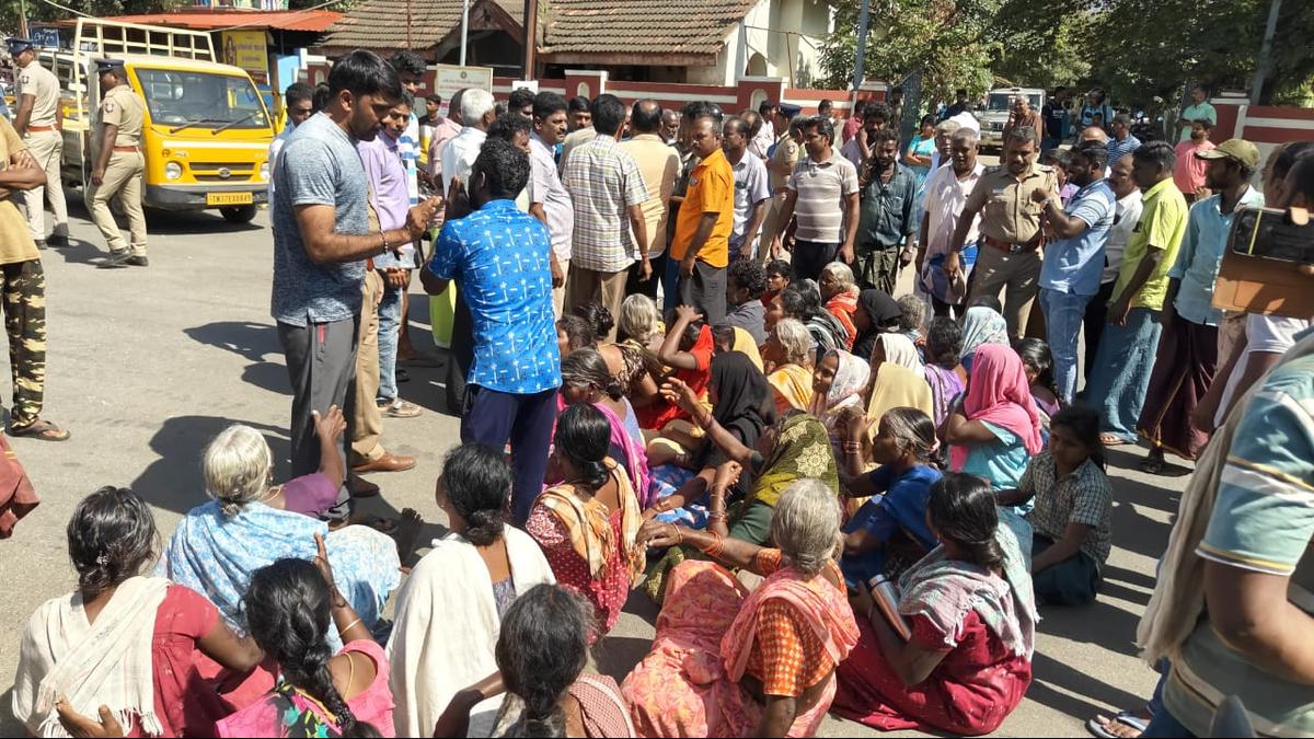 Residents of a village near Thondamuthur stage a road blockade, condemning the Forest department’s alleged inaction
