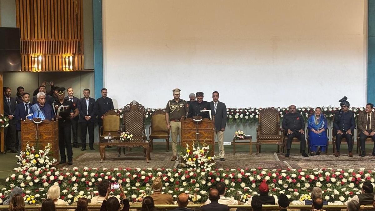 L-G Manoj Saxena administered Omar Abdullah and his selected members the oath of office at the Sher-i-Kashmir International Convention Centre (SKICC)