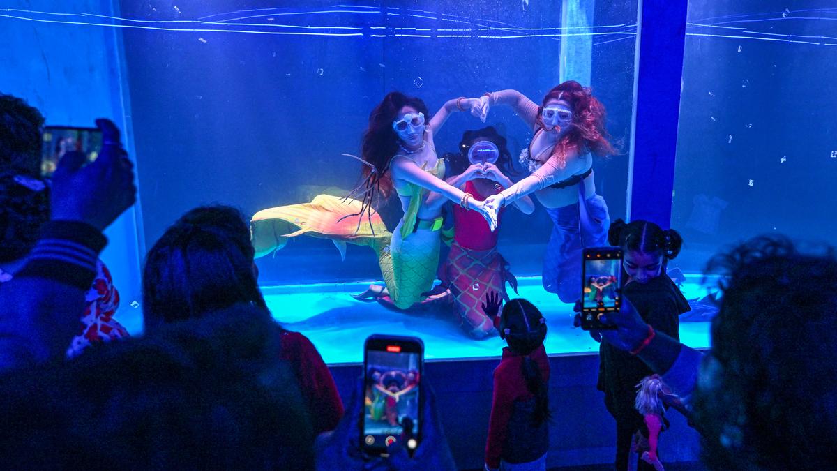 Professional mermaids from the Philippines and Spain perform at an ongoing exhibition on Beach Road